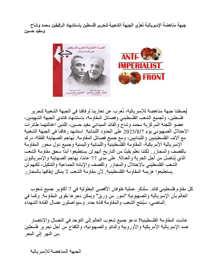 في نهاية كلمة الرفيق حيّا محور المقاومة على الدعم الذي يقدمه للشعب الفلسطيني ومقاومته الباسلة في غزة والضفة، وحيّا جبهات الإسناد في لبنان واليمن والعراق.