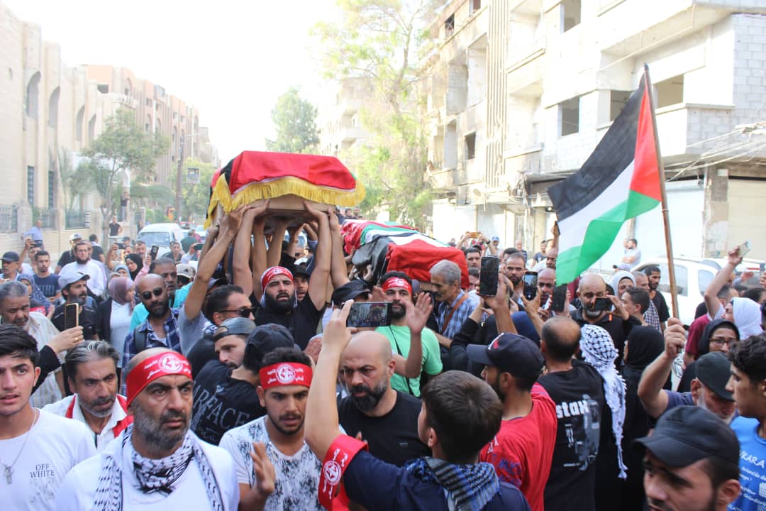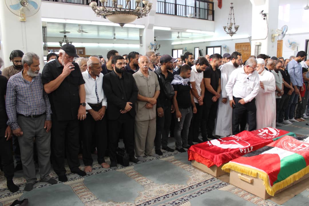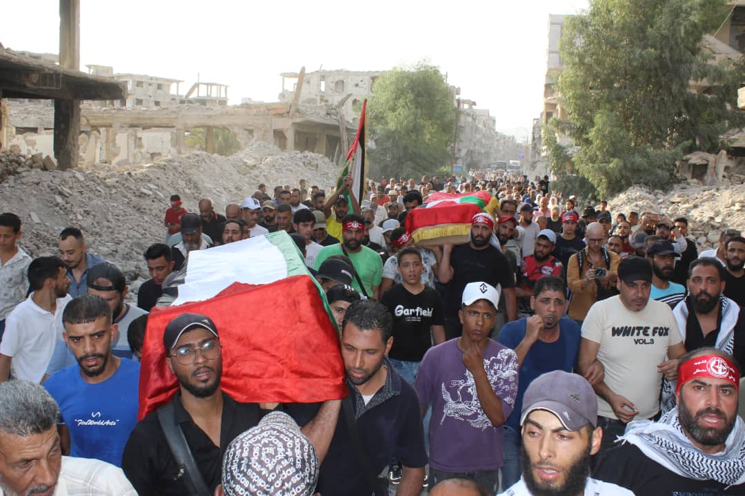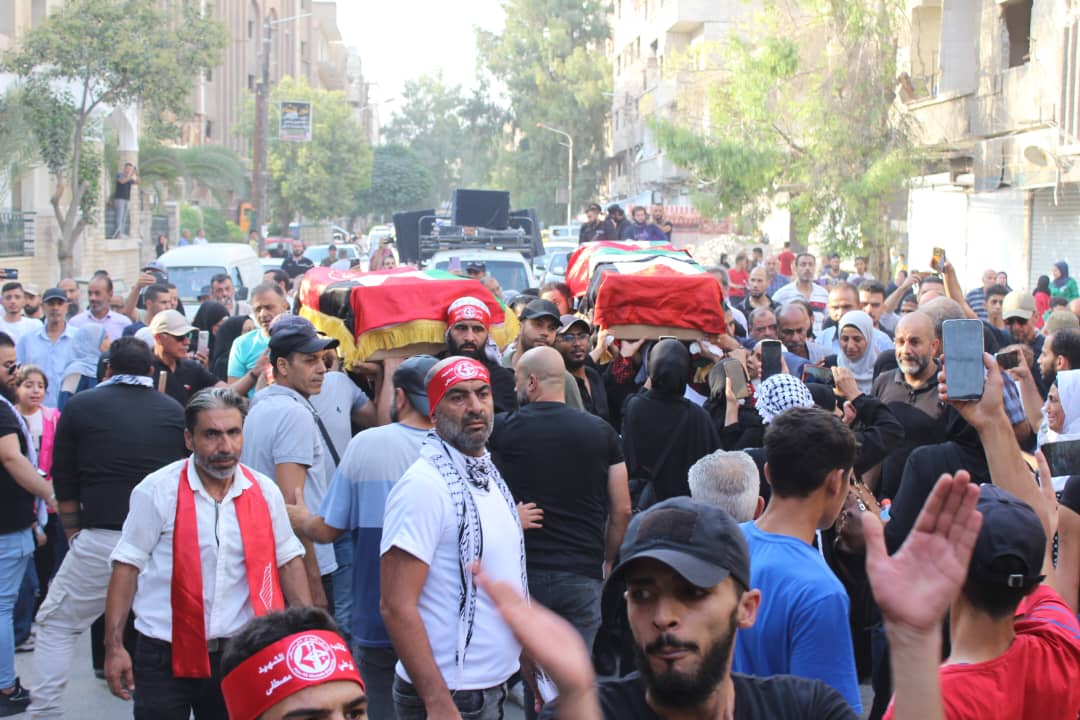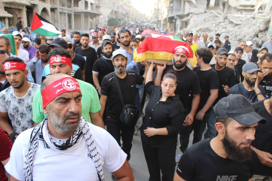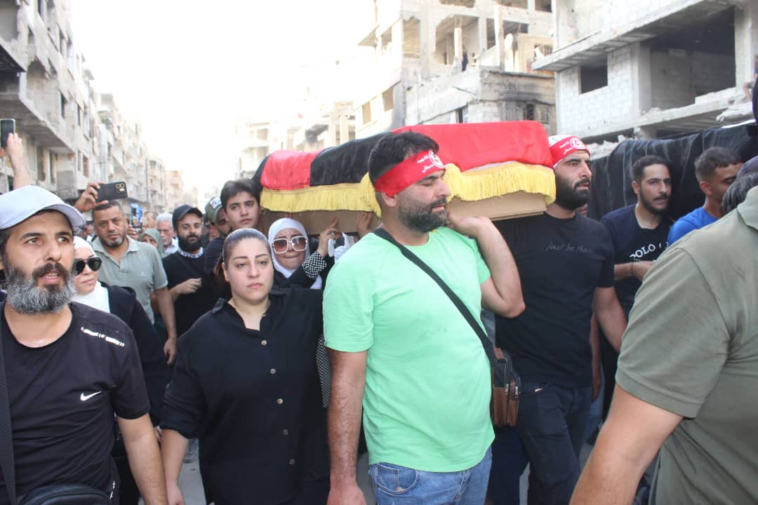 جماهير شعبنا الفلسطيني يشيّعون جثامين قادة الجبهة أبو خليل وشاح ومفيد حسن في سوريا