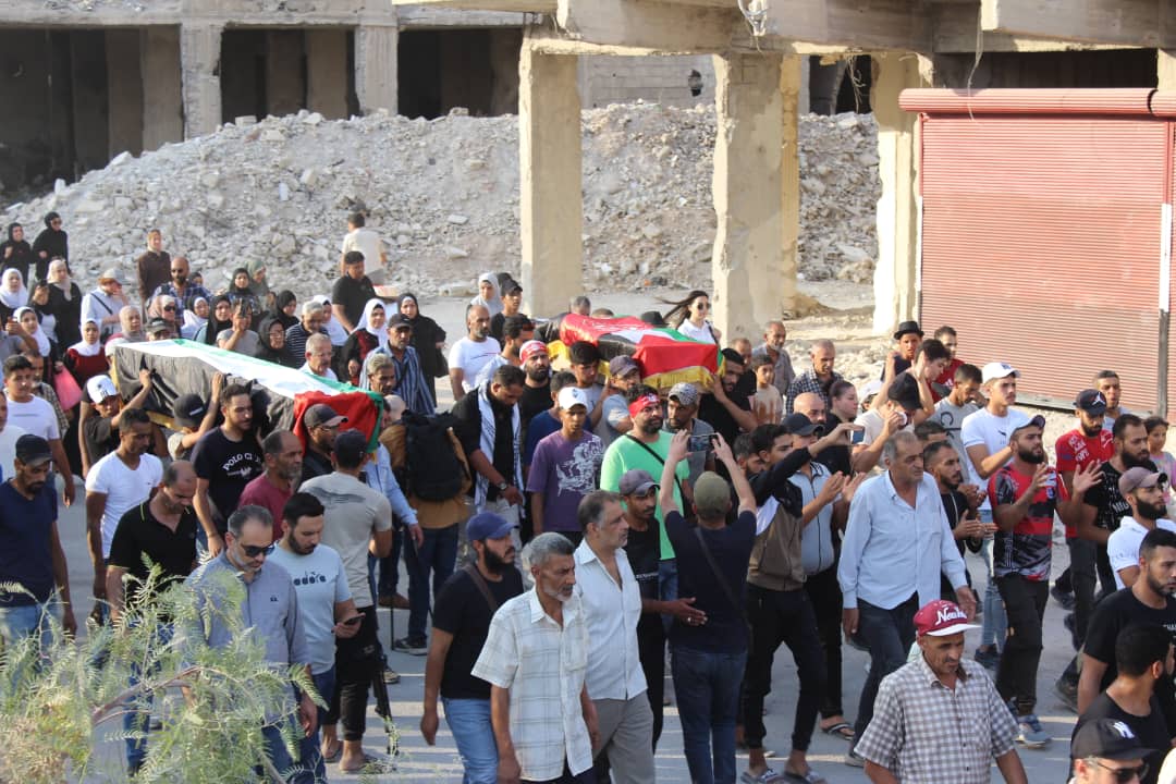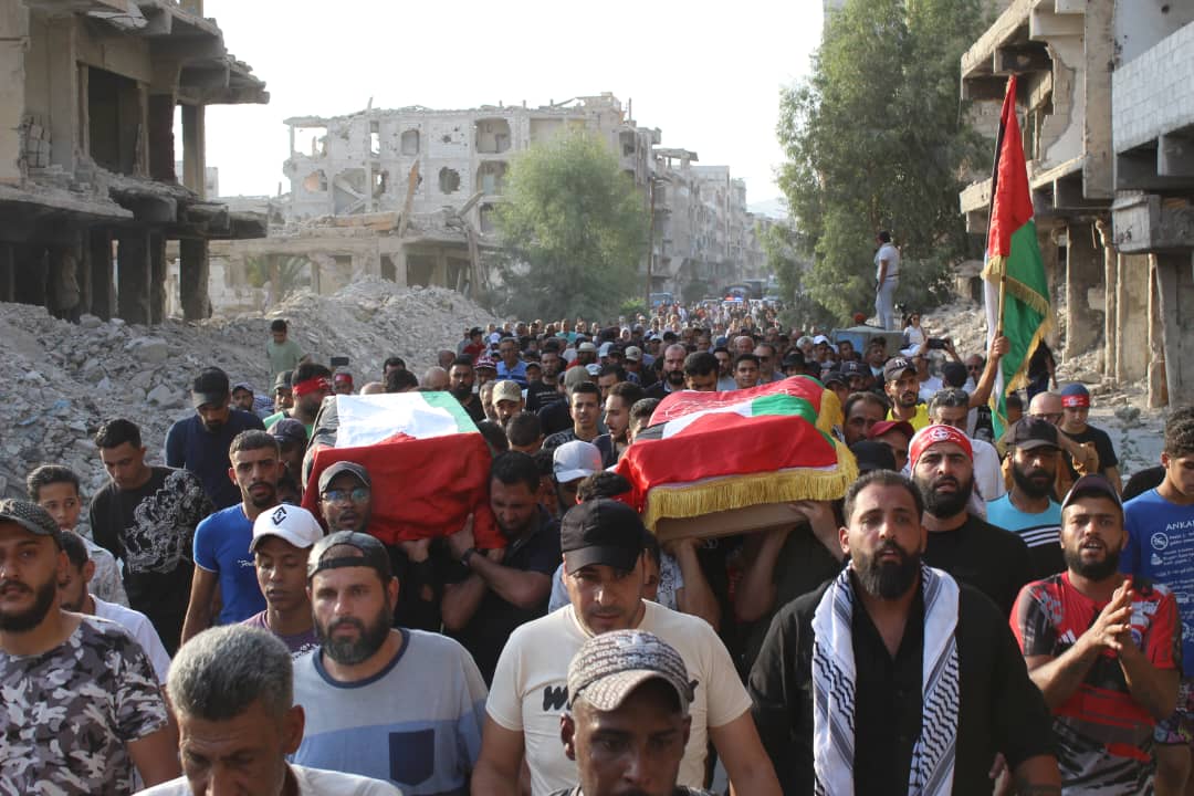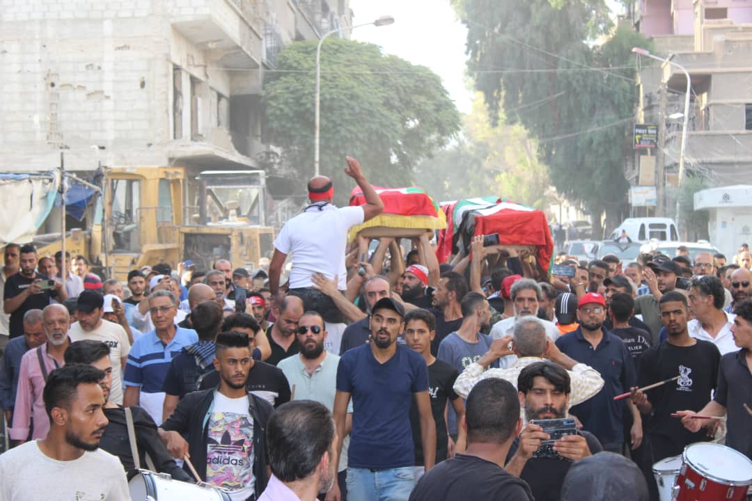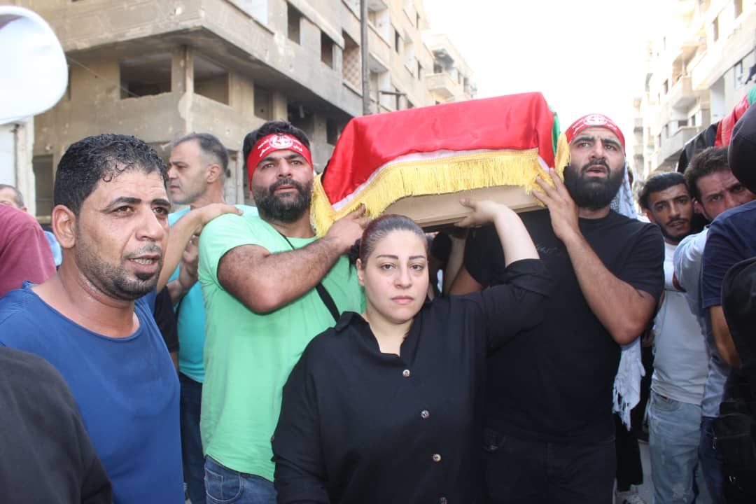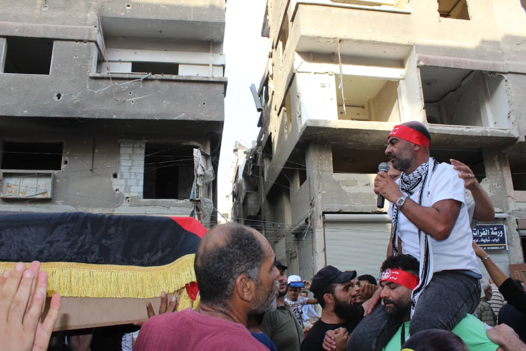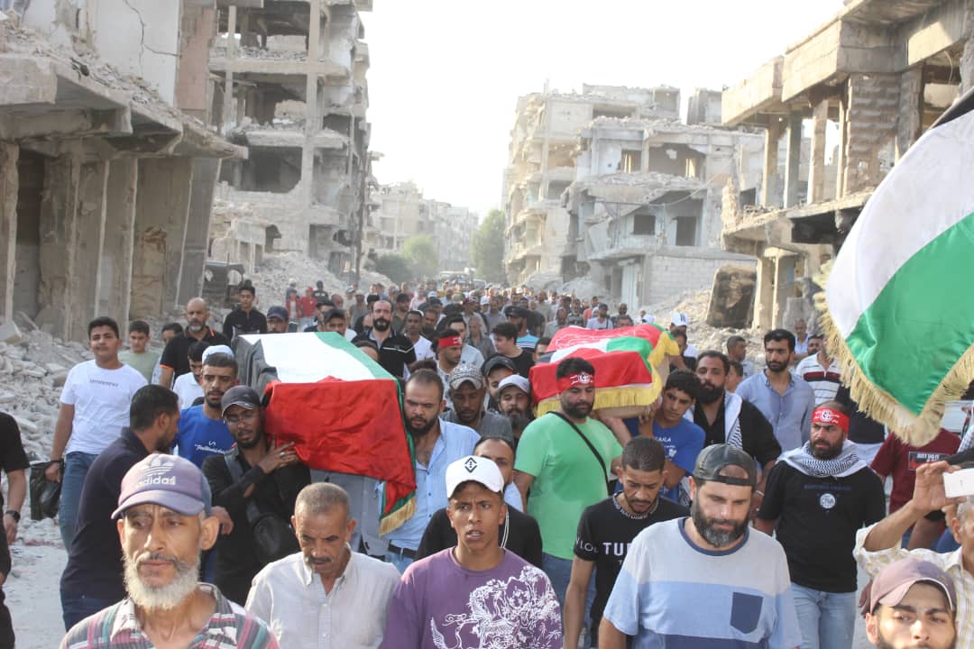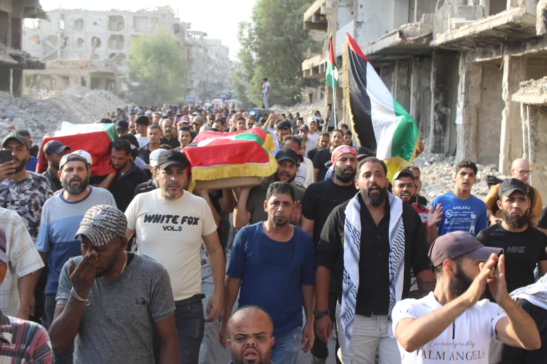 جماهير شعبنا الفلسطيني يشيّعون جثامين قادة الجبهة أبو خليل وشاح ومفيد حسن في سوريا