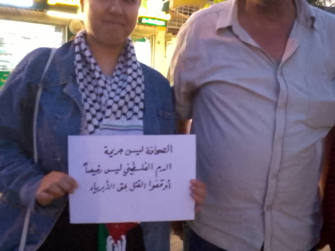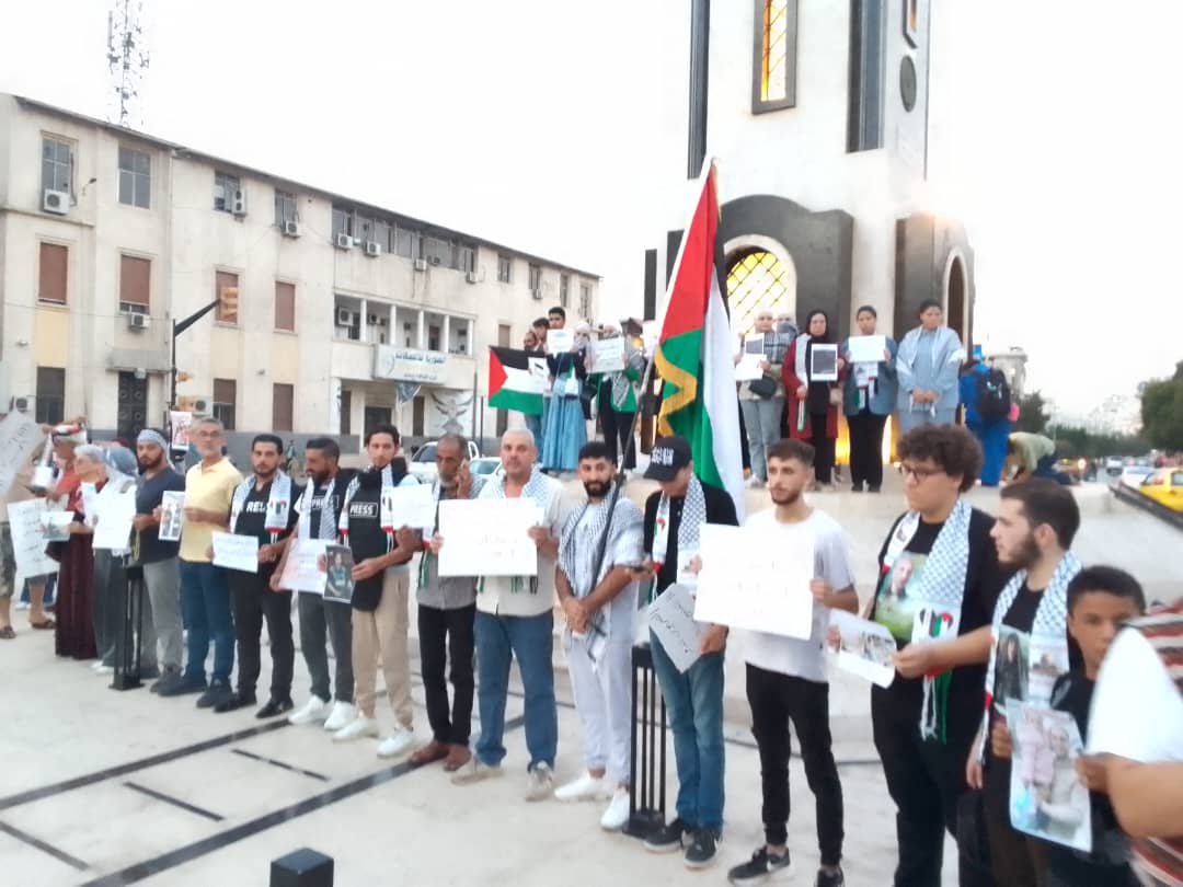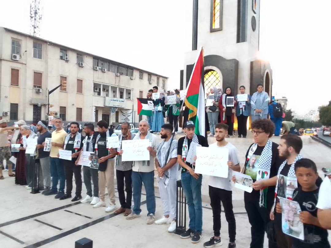 نظم مجموعة من الشباب السوري والفلسطيني وقفة استنكار وتنديد  باغتيال الصحفيين أنس الشريف ومحمد قريقع وزملائهم.وذلك في ساحة الساعة الجديدة بحمص.