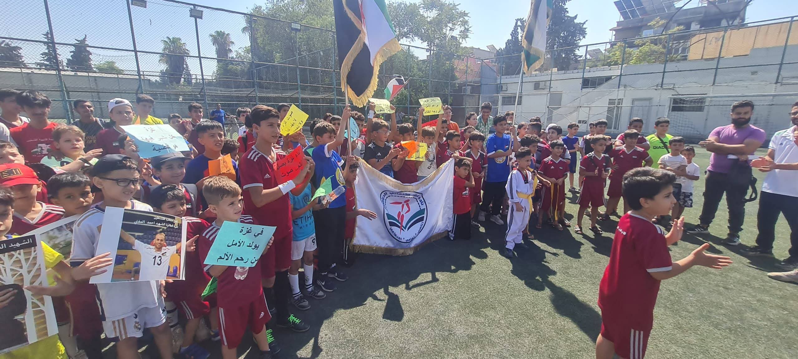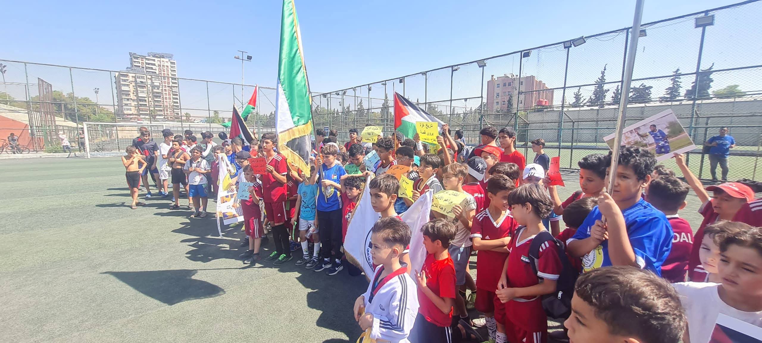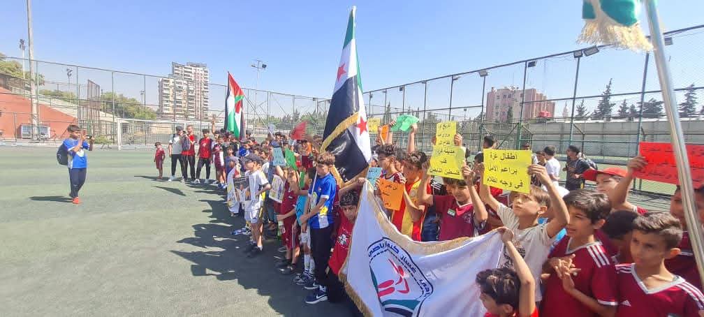 عبر أطفالنا اللاعبين عن تضامنهم مع أهلنا في قطاع غزة من خلال رسائل وصور توثق جرائم الاحتلال، وفي رسالة أحد الأطفال الصغار يقول ( أنا سوري وأرفض أن أرى أخي الفلسطيني يموت جوعاً دون أن يساعده أحد )