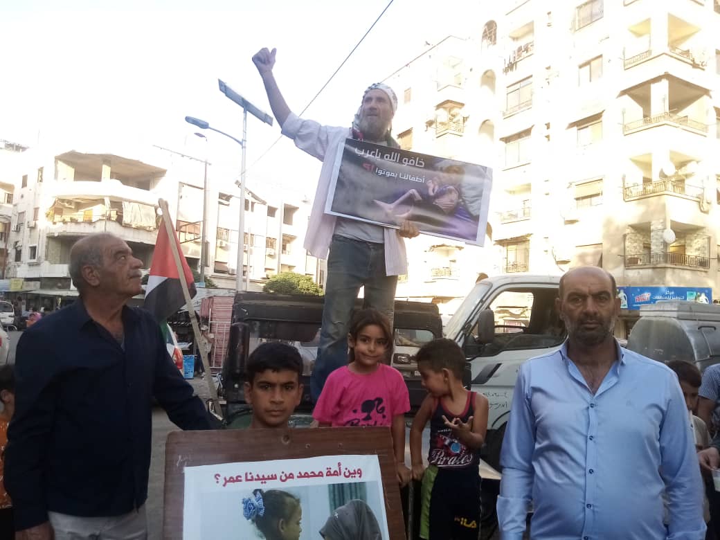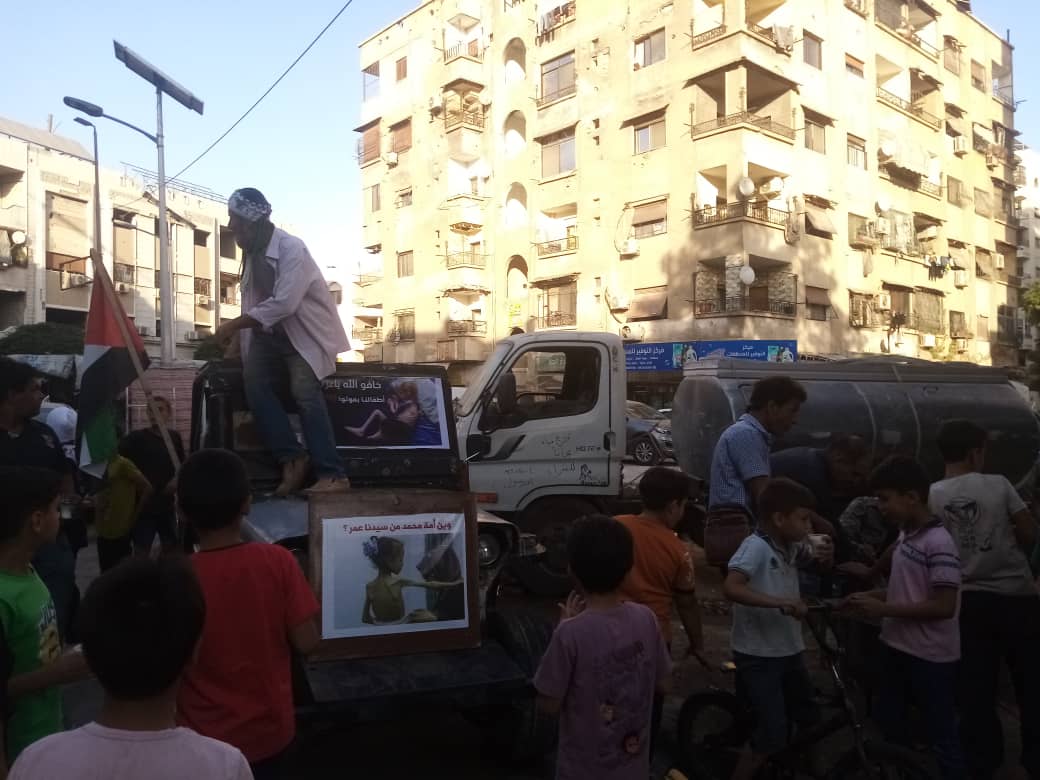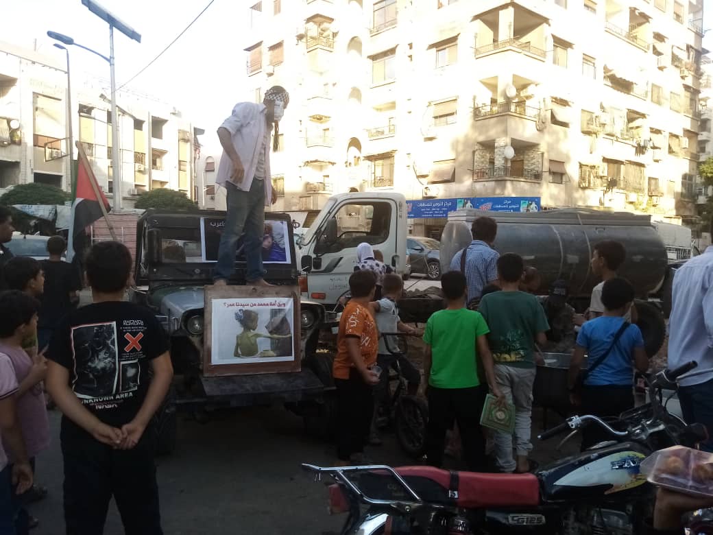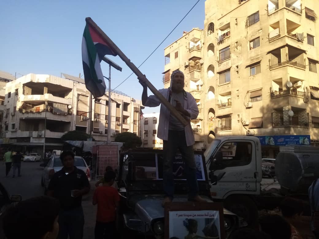 برزة البلد.. الناشط السوري أبو رسول ينظّم وقفات تضامنية مع غزة