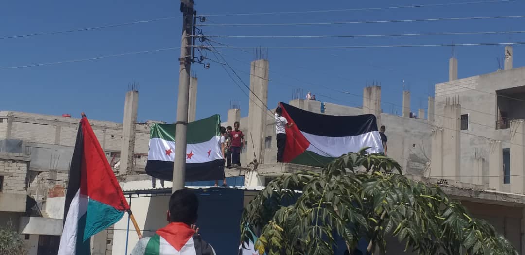 نظّم فريق سوريون مع فلسطين ، وقفة شعبية في مدينة نوى غرب مدينة درعا دعما لأهل غزة، ورفضا للتوغل “الاسرائيلي” في سورية.