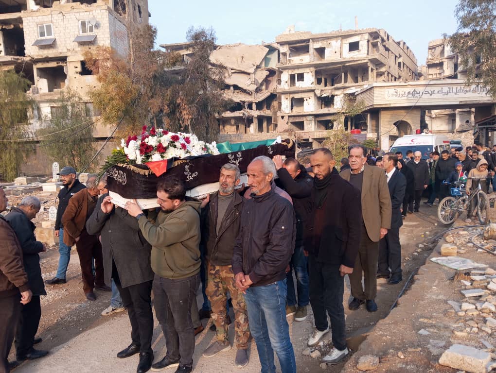 الشعبية تشارك في تشييع القيادي بالجبهة الديمقراطية الرفيق خالد عطا، في مخيم اليرموك بدمشق.