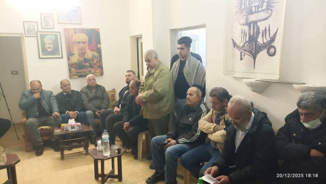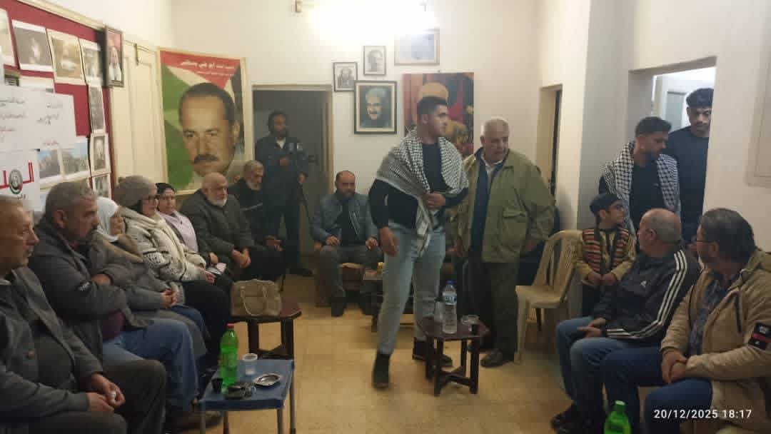 و قدم الحضور التهنئة للجبهة بذكرى انطلاقتها وجرى حوار تكلم الحديث عن فلسطين الحاضر والماضي والمستقبل.