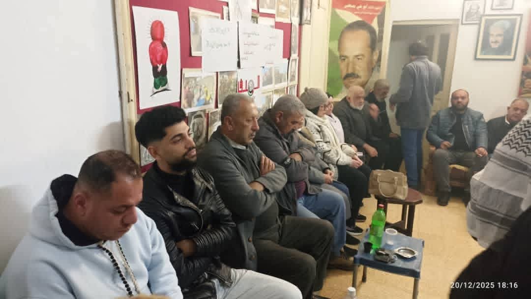 نظمت الجبهة الشعبية. لتحرير فلسطين في اللاذقية حفل استقبال بذكرى الانطلاقة 58 بحضور فصائل منظمة التحرير الفلسطينية ومختار حي القدس وحشد من الضيوف
