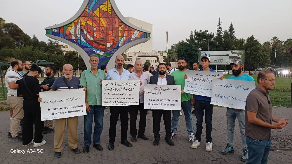 بدعوة من ناشطين وصحفيين نظمت في ساحة الأمويين بدمشق وقفة شجب واستنكار لاغتيال الاحتلال الإسرائيلي مراسلا قناة الجزيرة الشهيد أنس…